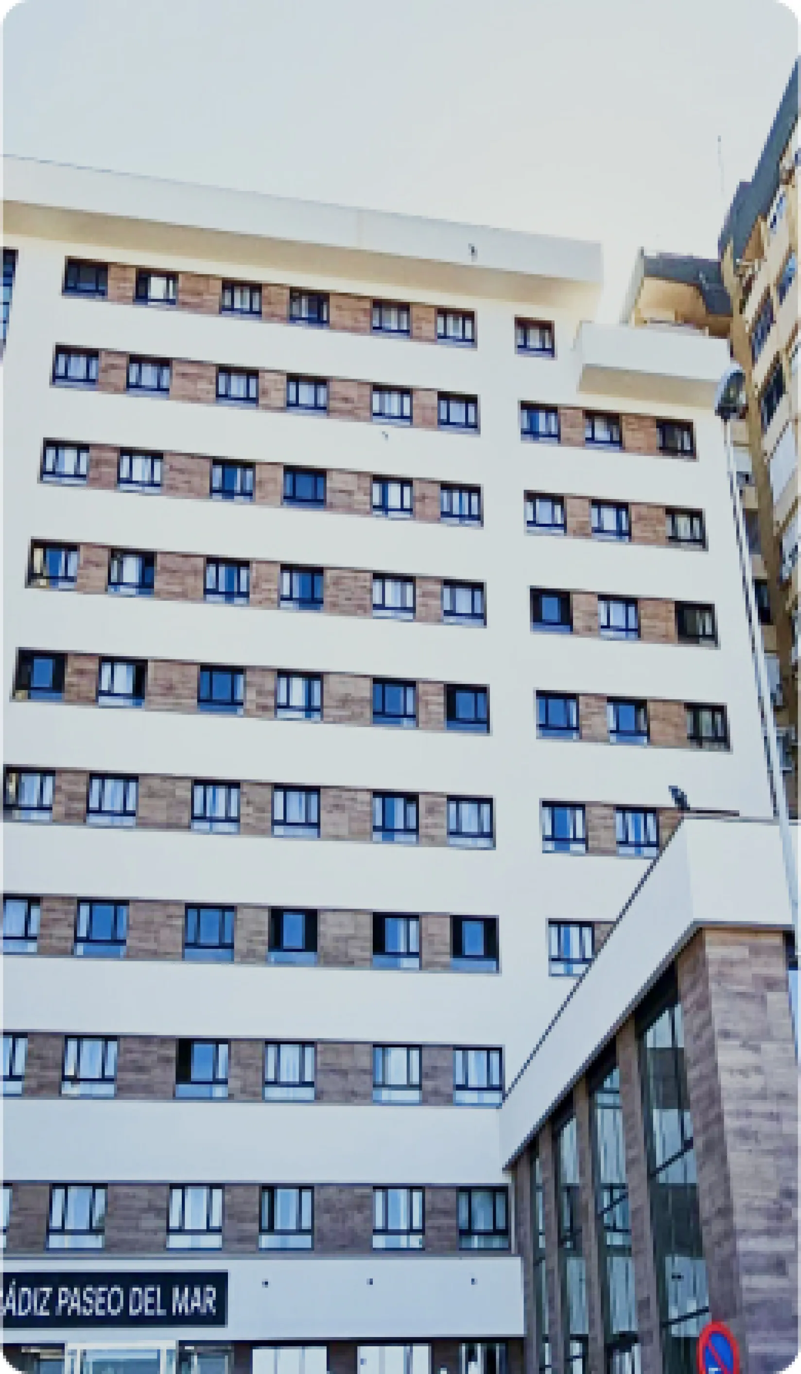 Soluciones de Saint-Gobain instaladas. Residencia Asistida de Manresa, Barcelona (a la izquierda). Hotel Meliá Cádiz Paseo del Mar, Cádiz (centro). Espacio de negocios Parque Joyero de Córdoba (derecha).